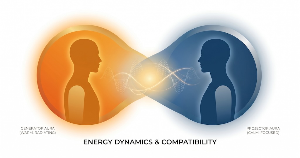 Generators are the backbone of most relationships — they have sustained sacral energy and a magnetic aura that draws people in. In a healthy relationship, a Generator lights up when they're doing what genuinely responds to them. The challenge: Generators who suppress their responses to "keep the peace" become frustrated and resentful. Their partner feels this even when no words are spoken.